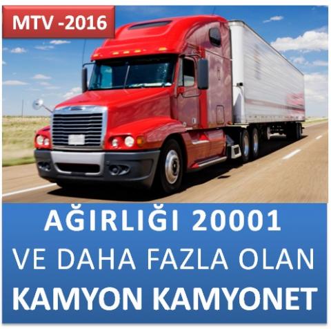 2016 MTV HESAPLAMA - AĞIRLIĞI 10001-20000 ARASI OLAN KAMYON KAMYONET VE ÇEKİCİ