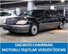 Daewoo Chairman araçları için Motorlu Taşıtlar Vergisi 1. Taksit ödemeleri için son gün 31 Ocak. Bilindiği üzere Motorlu Taşıtlar Vergisi ödemeleri 2 eşit taksit halinde tahsil edilmektedir. Motorlu Taşıtlar Vergisinin 2. Taksit ödemelerini Temmuz’un 31’una kadar yapabilirsiniz. MTV ödemelerinde cezalı duruma düşmemek için borç ödemenizi belirtilen son ödeme tarihinden önce tamamlayınız.